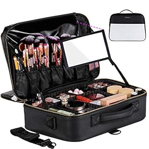 Joligrace Makeup Box Train Case Large Storage Capacity Portable Travel Cosmetic Organizer with Compartments and 2-Tier Trays with Mirror, Lockable with Keys – Black Pattern