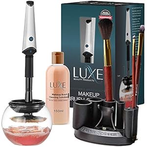 Luxe Makeup Brush Cleaner – 5oz Makeup Cleaning Solution Included |USB Charging Station| 3 Adjustable Speeds| Instantly Wash and Dry Your Makeup Brushes