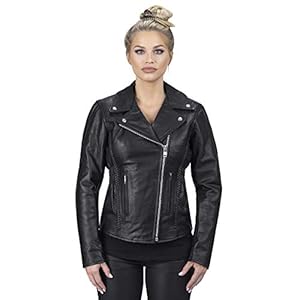 Viking Cycle Classic Cruise Cowhide Motorcycle Leather Biker Jacket for Women
