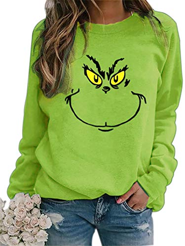 Meladyan Women’s Funny Graphic Crew Neck Sweatshirts Merry Christmas Raglan Sleeve Pullover Shirts Tops