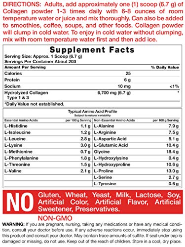 Our super nourishing unflavored high potency collagen peptides formula is a non-GMO product that is packaged and lab tested for quality in the USA. It contains various amino acids, including L-Arginine, L-Lysine and Glycine, making this great supplement the best to buy in bulk!