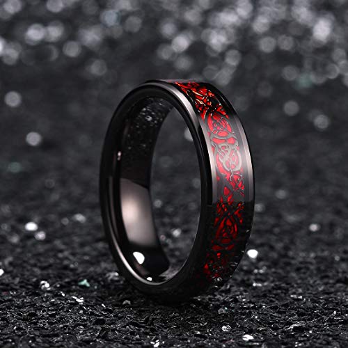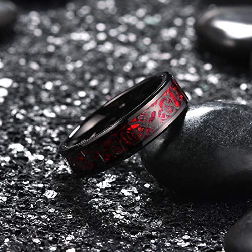 Unique black celtic dragons with red opal background inlay, which is an extraordinary wedding ring.