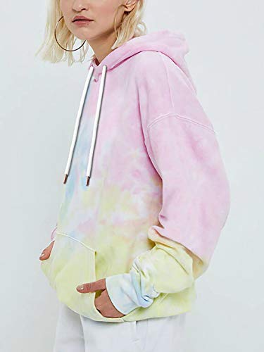 LOGENE Women’s Tie Dye Print Hoodie Sweatshirt Long Sleeve Casual Loose Boyfriend Pullover Hooded Sweatshirts with Pocket