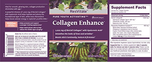 1,000 mg of BioCell Collagen with Hyaluronic Acid – Smoothes the looks of lines and wrinkles – Boosts skins luminosity, texture firmness Vital for smooth, glowing skin, collagen production diminishes with age. You cant stop time, but you can make it less visible. Give your skin a workout from the inside out with this skin-supporting beauty breakthrough. A powerful infusion of 1,000 mg of BioCell Collagen with Hyaluronic Acid helps hydrate and plump the foundational layer of skin, while trans-Resveratrol boosts cellular energy to replenish youthful DNA. The Art ResVitle introduces Vinologie harnessing the nature of the vineyard to protect youthful radiance. Rich in French heritage, the vineyard in combination with wild crafted Polygonum cuspidatum possesses the finest Resveratrol ResVitles devotion to agelessness begins here. The Benefits For radiance and tone, BioCell Collagen uses hyaluronic acid and chondroitin to plump and reduce the appearance of lines and wrinkles from within while replenishing lost collagen. The Proof BioCell Collagen has been shown to boost skins luminosity, texture and firmness. Research indicates that Resveratrol may help increase cellular longevity. Reactivate Your Ageless Self – ResVitle embraces youth and supports unparalleled protection against the effects of aging. Innovation is our trademark, we deliver the latest youth promoting technology to you.