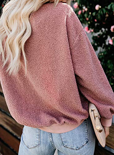 Shawhuwa Women’s Casual Crewneck Long Sleeve Fleece Pullover Sweatshirts Solid Color Fuzzy Warm Outerwear Tops