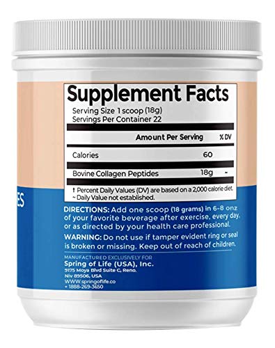 Spring of Life Collagen Peptides, from Grass-Fed Cows, 18g Collagen Peptides Per Serving, 418 Grams